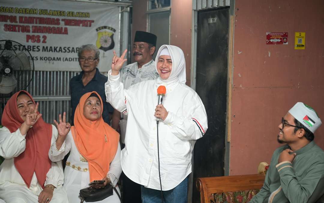 MAKASSR,- Calon Wali Kota Makassar nomor urut 3, Indira Yusuf Ismail, menghadiri pengajian rutin yang digelar oleh masyarakat RW 07 Aditrina, Kelurahan Bitowa, Kecamatan Manggala, Selasa (24/9/2024).