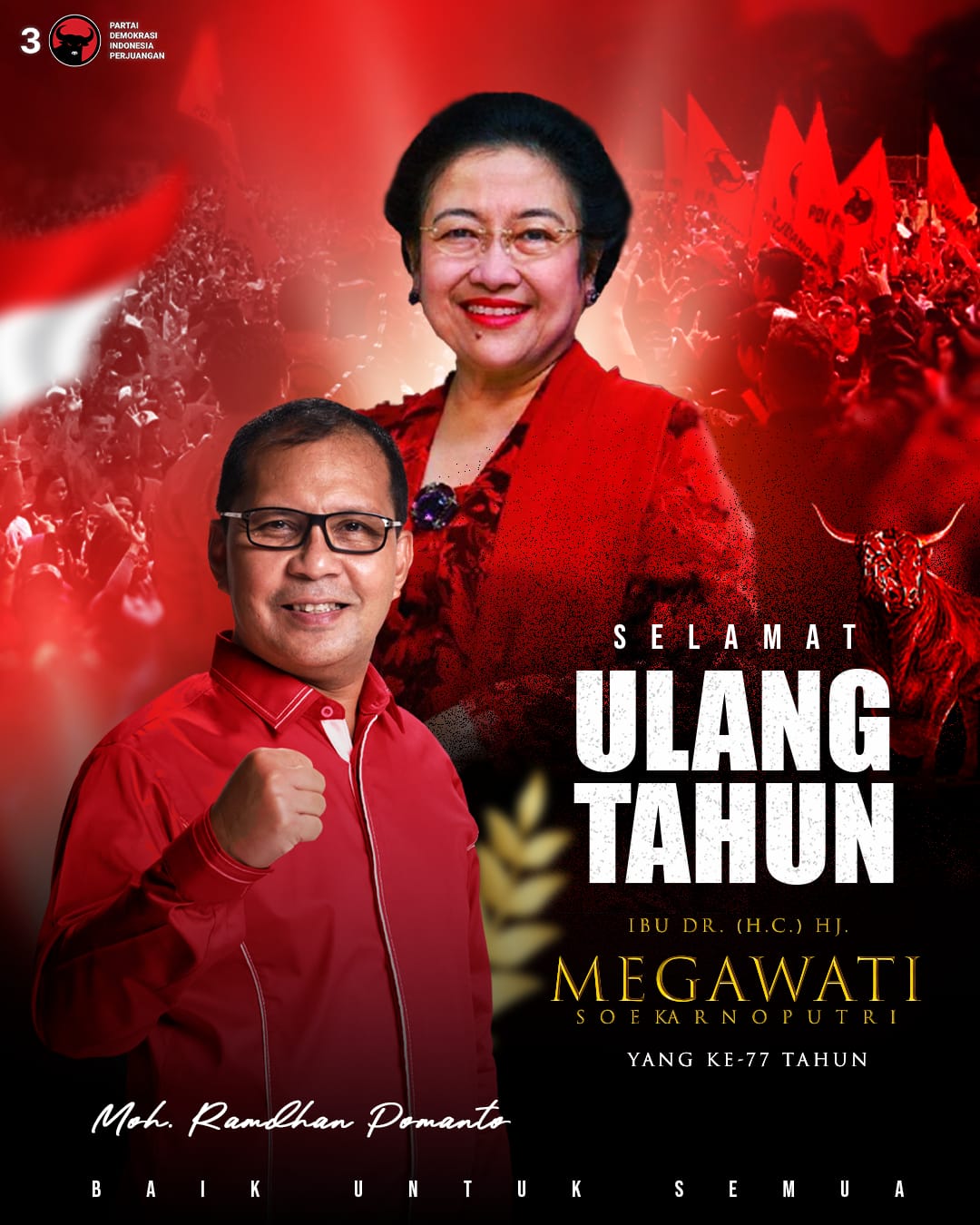 MAKASSAR,- Politisi PDI-P Moh Ramdhan Pomanto menghaturkan selamat ulang tahun kepada Ketua Umum PDI-P Megawati Soekarnoputri.