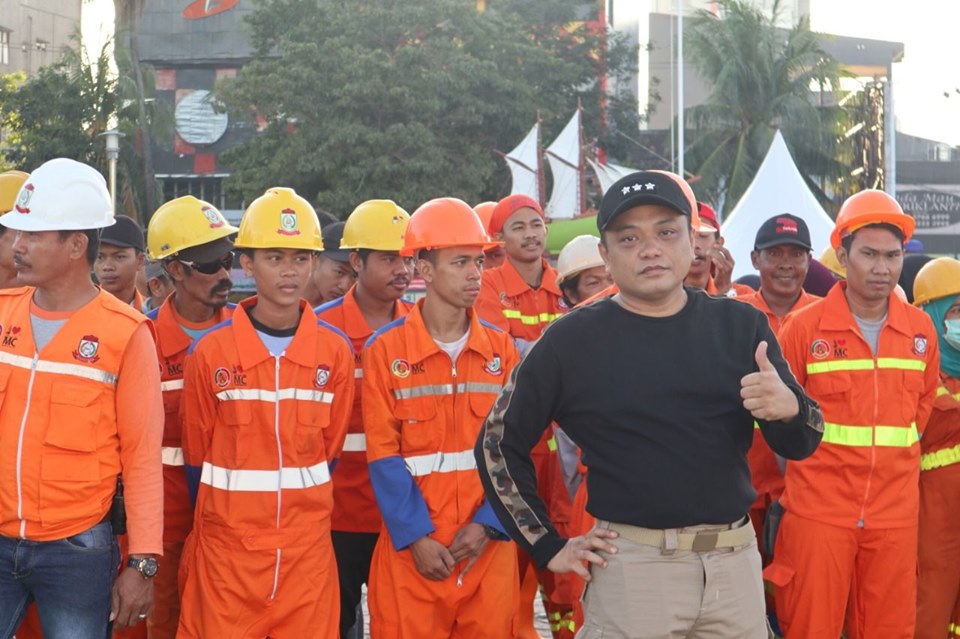 WAHANA INFOTA – Camat Rappocini Sulyadi Perdana Putra SG, bersama Satgas Kebersihan Kecamatan Rappocini mengikuti Apel Siaga sebagai bagian dari acara launcing pencanangan salah satu program Pemerintah Kota Makassar yaitu Gerakan Makassar (GEMA) Sabtu Bersih ‘Clean, Comfort and Continuity Makassar Green City’ di Anjungan Pantai Losari Makassar, Sabtu (22/06/2019).