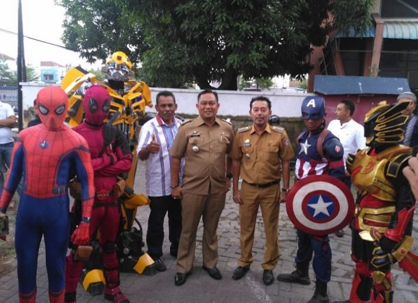 Saat tiba di kantor Bawaslu Sulsel, 15 camat itu dikawal sejumlah super hero dari Marvel, Avengers seperti Captain Amerika dan Spiderman. Tampak juga tokoh super hero lainnya seperti Satria Garuda BIMA-X dan Bumblebee dari Transformer.