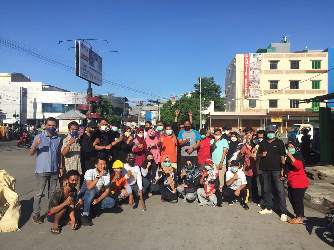 WAHANA INFOTA, MAKASSAR — Camat Wajo, Benyamin B kembali memantau aktifitas kerja bakti yang berlangsung di sepanjang jalan Hos Cokroaminoto, Kelurahan Pattunuang, Jumat (5/11/2021)