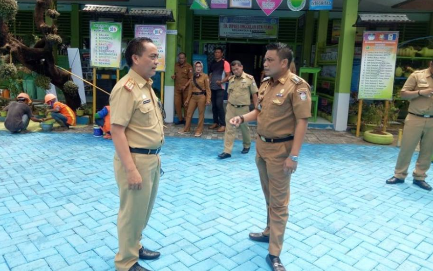 Kepala Dinas Pendidikan Abd. Rahman Bando, didampingi Camat Rappocini, Sulyadi Perdana Putra SG memantau langsung terkait proses pembenahan SD Inpres Ungulan BTN PEMDA, , Selasa (12/02/19).