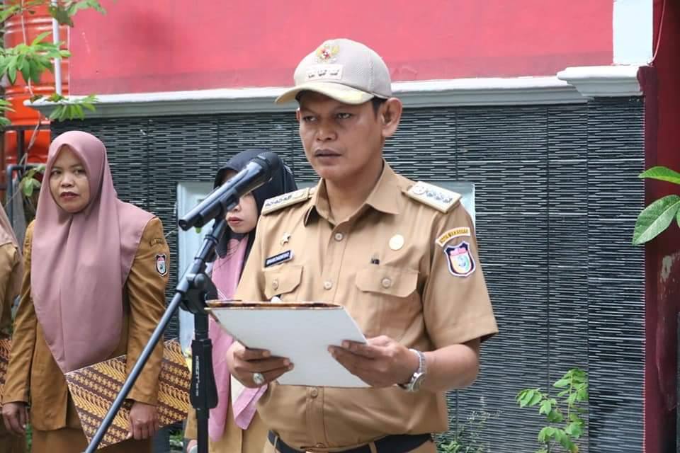 WAHANA INFOTA – Camat Ujung Tanah Ibrahim Chaidar Said bertindak selaku pembina dalam Upacara yang dipimpin oleh Staf Kelurahan Cambaya Irwan Kusanni, senin (7/1/2019).