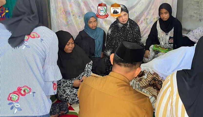 Camat Ujung Pandang, Syahrial Samsuri melayat ke rumah duka di Jln.Sungai Pareman Lr.53 Kelurahan Lajangiru, Kecamatan Ujung Pandang, Selasa (05/12/2023).