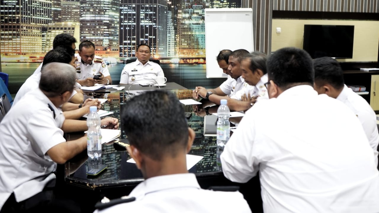 WAHANA INFOTA – Camat Tamalate Fahyuddin Yusuf didampingi sekcamnya Muh Darwis Syar menggelar Rapat Koordinasi (Rakoor) bersama para lurah diruang rapat kantor camat Tamalate jalan Danau Tanjung Bunga Utara Makassar, Rabu (6/2/19).