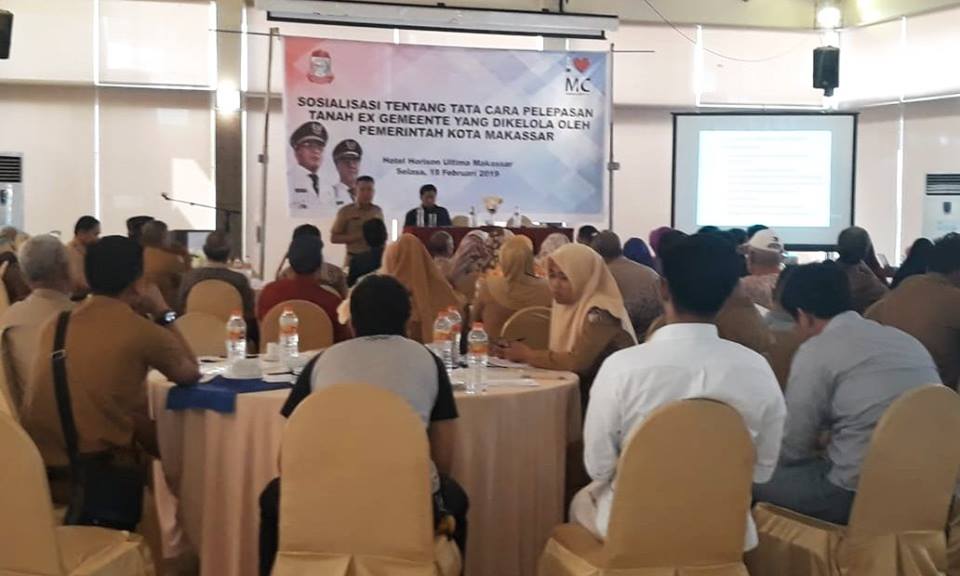WAHANA INFOTA – Dinas Pertanahan Kota Makassar mengadakan sosialisasi tata cara pelepasan tanah Ex Gemeentee bertempat di Hotel Horison Ultima Makassar, Selasa (19/2/2019). Tanah Ex.Gemeente di kota Makassar adalah merupakan tanah milik Indonesia yang pernah dikuasai oleh Pemerintah Hindia Belanda.lalu beralih menjadi Tanah Negara yang dikuasai oleh Pemerintah Kota Makassar.