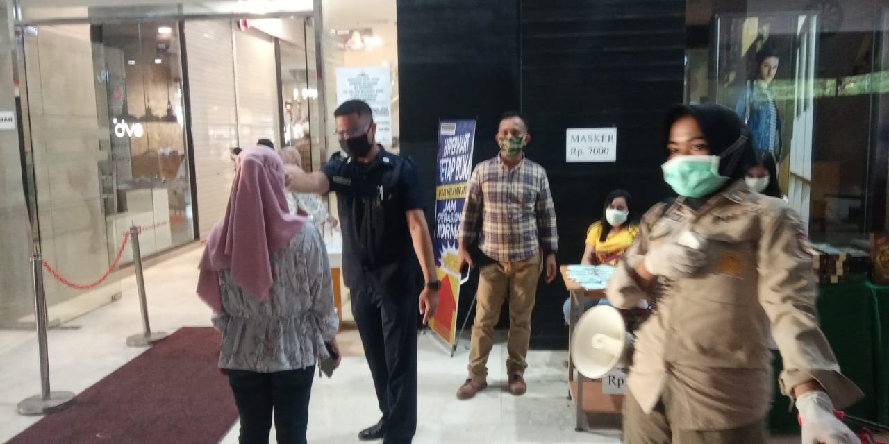 Aparat Satpol PP yang juga merupakan bagian Gugus Tugas Percepatan Penanganan Covid-19 Kota Makassar secara persuasif meminta kepada pengunjung mal untuk tetap mengedepankan Protokol Kesehatan sesuai yang tertuang di dalam Perwali.