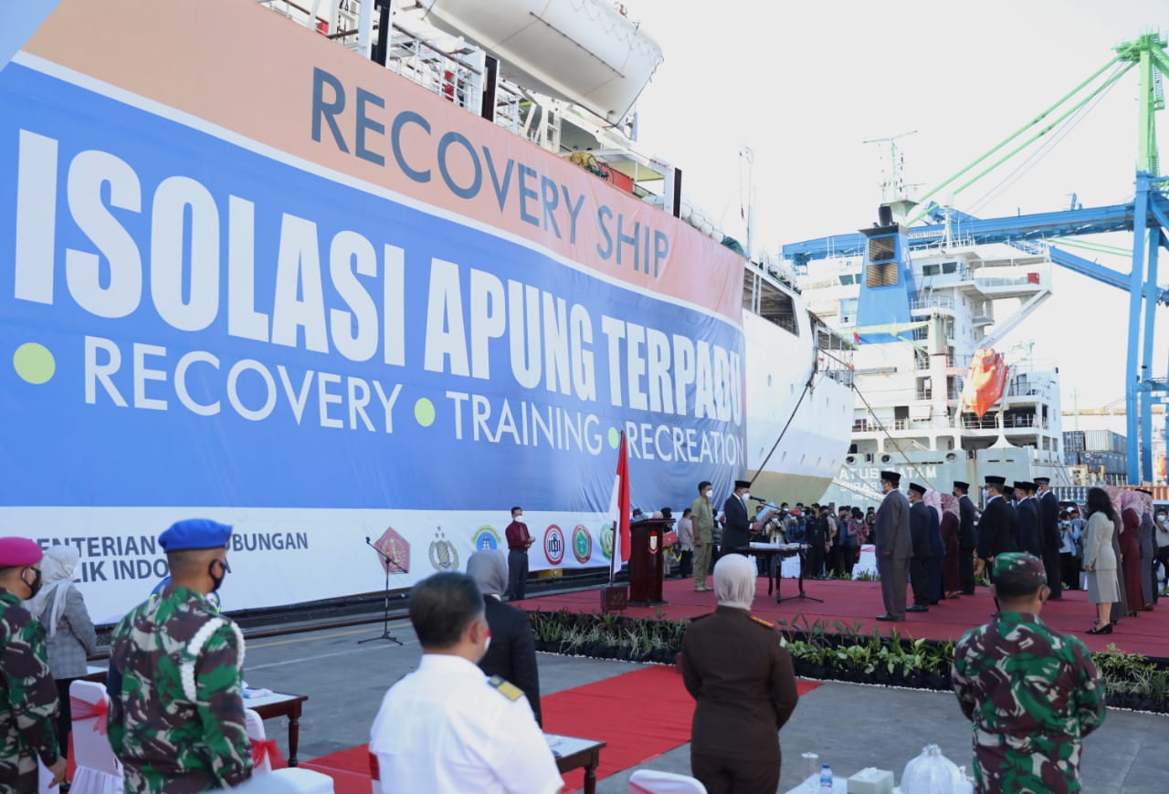 “Pertama karena kita telah mendapatkan ijin dari Kepala Kantor Otoritas Pelabuhan Utama Makassar Bambang Gunawan, yang kedua hari ini bersamaan diberlakukannya PPKM level 4 di Makassar, jadi kita laksanakan tata cara prokes di udara terbuka. Ketiga adalah dengan latar belakang Kapal Isolasi Apung sebagai tempat Isolasi bagi penderita orang tanpa gejala ringan,” terangnya.