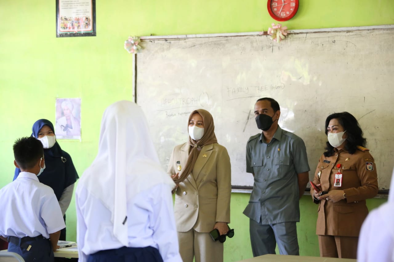 Fatmawati Rusdi Tinjau Proses PTM SMPN 44 Kelurahan Lakkang