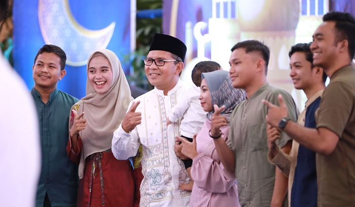 Indira bersama Wali Kota Makassar, Moh Ramdhan Pomanto, menyambut dan menjamu seluruh elemen masyarakat Kota Makassar secara terbuka di kediamannya, Senin (17/06/2024).