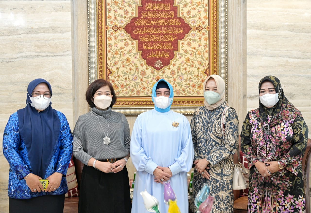 WAHANA INFOTA, MAKASSAR – Ketua Tim Penggerak PKK Kota Makassar, Indira Jusuf Ismail, yang juga selaku Ketua Dekranasda Kota Makassar bahas pengembangan UMKM bersama Persatuan Istri Pegawai Bank Indonesia (PIPEBI), di kediaman Walikota Makassar, Kamis (17/03/2021).