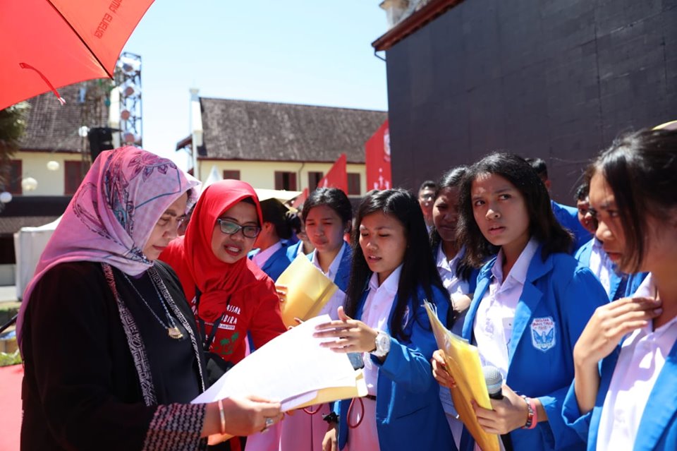WAHANA INFOTA – Ketua Tim Penggerak PKK Kota Makassar, Murni Djamaluddin Iqbal, meninjau secara langsung persiapan penutupan Forum Anak Nasional (FAN) yang akan digelar di Fort Rotterdam malam nanti, Senin (22/07).