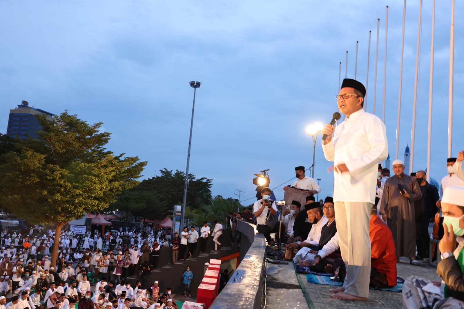 WAHANA INFOTA, MAKASSAR – Makassar shalat subuh berjamaah kembali di gelar Pemerintah Kota Makassar di Anjungan Pantai Losari, Minggu (17/4/2022). Kegiatan ini di jadikan agenda rutin selama bulan ramadhan dan telah dua kali terlaksana di tahun 2022.