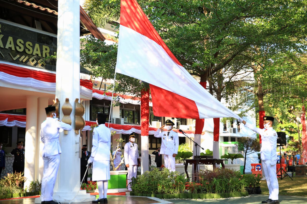 WAHANAINFOTA MAKASSAR – Upacara peringatan hari Kemerdekaan Republik ndonesia yang ke 75 tingkat Kota Makassar di gelar berbeda di banding tahun-tahun sebelumnya. Upacara dilakukan dengan jumlah terbatas dan menerapkan protokol kesehatan.