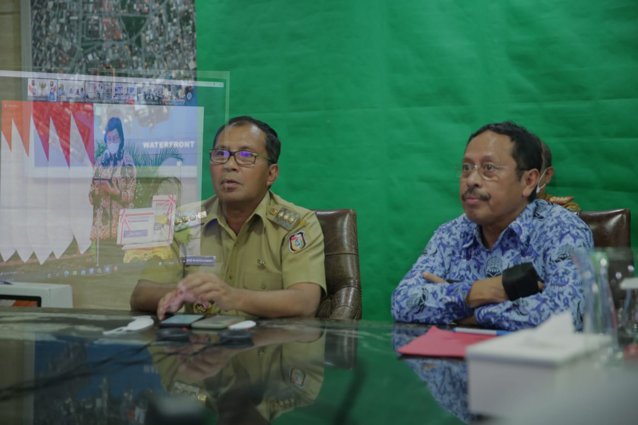 WAHANA INFOTA, MAKASSAR — Wali kota Makassar Moh Ramdhan “Danny” Pomanto menyaksikan penyerahan Daftar Isian Pelaksanaan Anggaran (DIPA) serta Rincian Alokasi Transfer ke Daerah dan Dana Desa (TKDD) Tahun 2022, oleh Presiden RI Joko Widodo di Istana Negara melalui video confidence. Senin (29/11/2021)