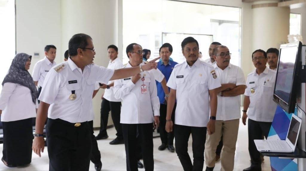 Drajat Wisnu yang memimpin “Common Sense” LPPD bersama rombongan datang langsung melihat sistem pelayanan perizinan di Gedung PTSP Bintang Lima.