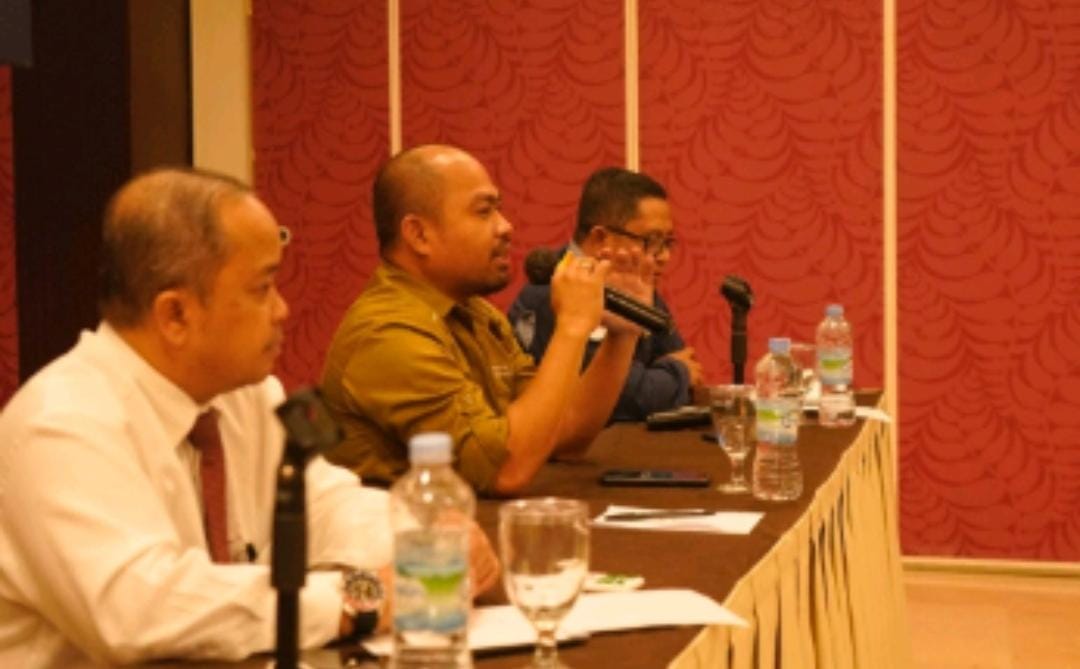 Kepala Dinas Pariwisata Kota Makassar Muhammad Roem di dampingi staff bidang promosi Dinas Pariwisata Kota Makassar serta Ketua PHRI Sulsel Anggiat Sinaga menghadiri pelaksanaan Press Conference MICE EXPO Makassar 2022 di Hotel Claro Makassar. Selasa, (11/10/2022).