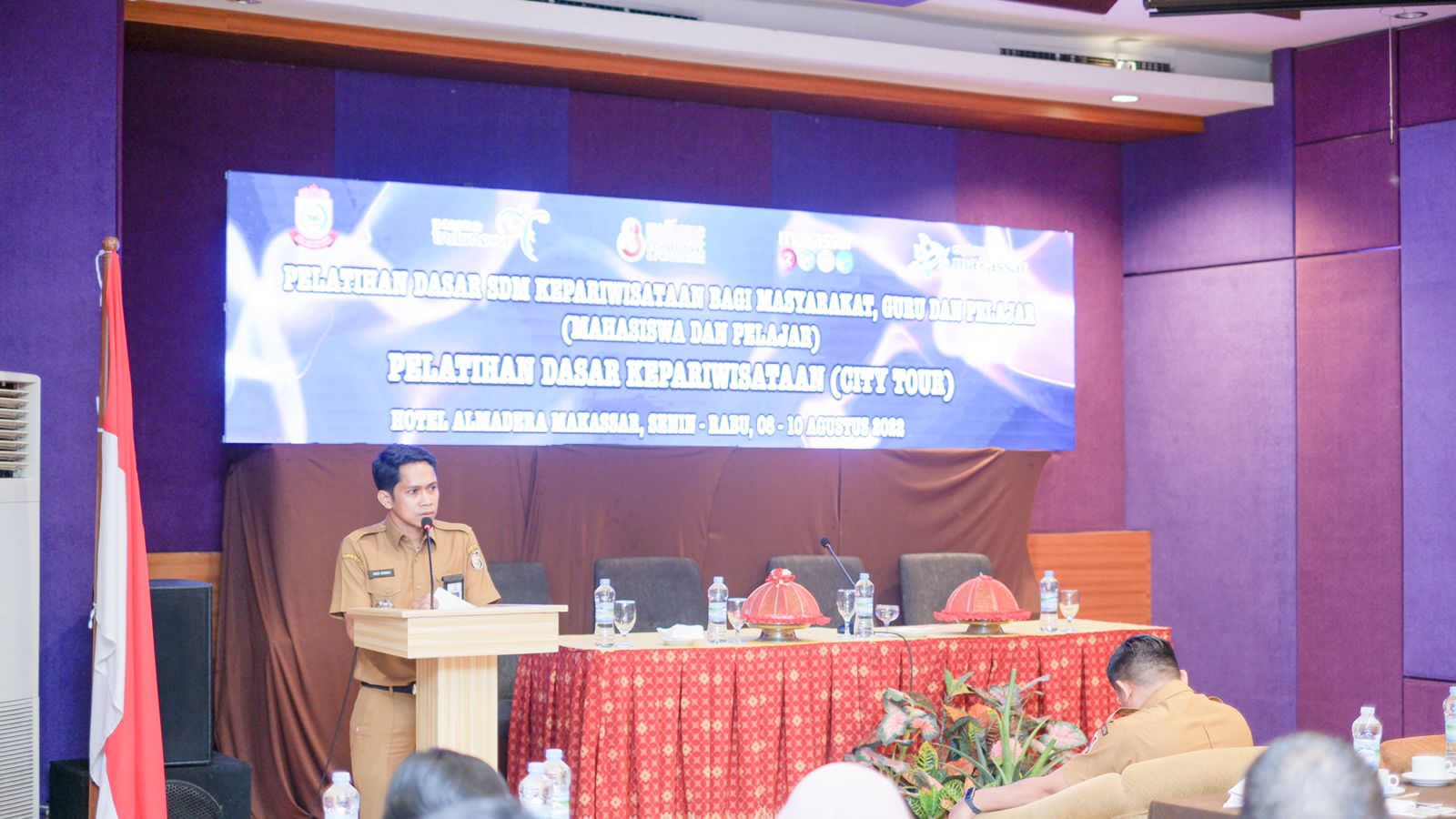WAHANA INFOTA, MAKASSAR – Terus Berupaya Meningkatkan Kualitas Sumber Daya Manusia di Sektor Kepariwisataan, Dinas Pariwisata Kota Makassar Melaksanakan Kegiatan Pelatihan Dasar Sumber Daya Manusia Kepariwisataan bagi Masyarakat Umum Guru dan Pelajar. Senin, 08 Agustus 2022 di Hotel Almadera Makassar