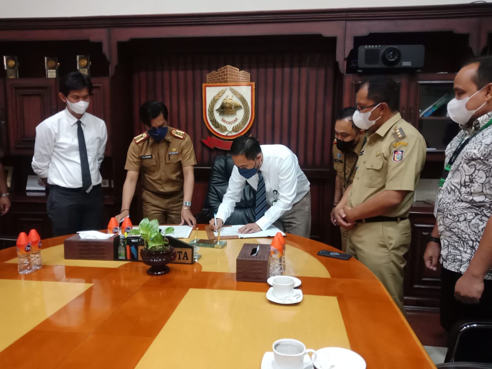 Penanda tanganan kerjasama antara keduanya, disaksikan langsung oleh Wali kota Makassar Moh. Ramdhan “Danny” Pomanto diruang rapat kantor Balaikota Makassar. Senin (8/11/2021).