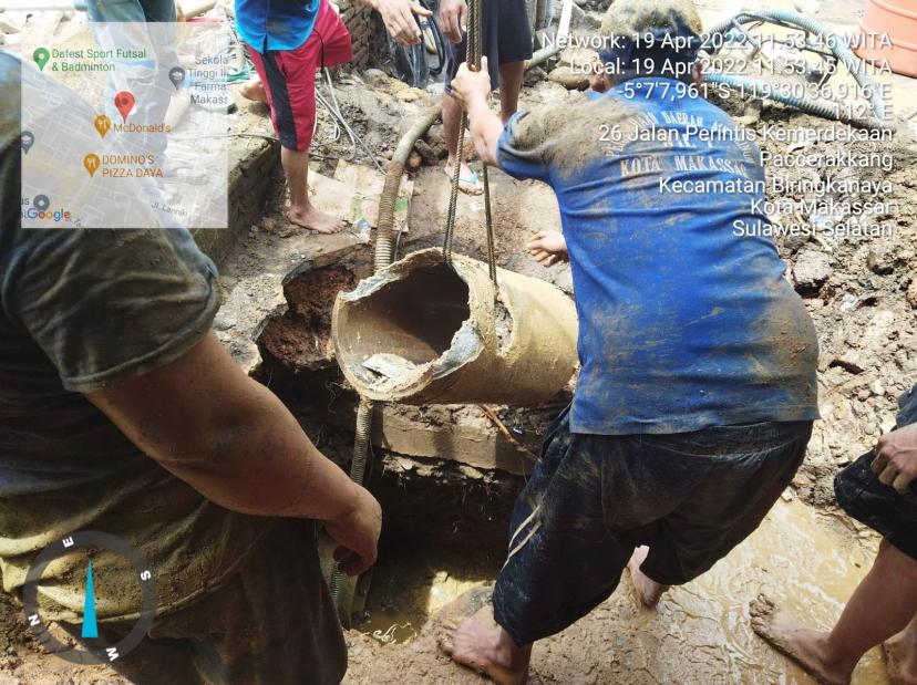 WAHANA INFOTA, MAKASSAR – Sejak semalam sebelum pukul 24, petugas tehnik PDAM sudah terlihat berjibaku di lokasi terjadinya kebocoran Pipa Distribusi Utama diameter 400 mm yang berlokasi di Jalan Perintis Kemerdekaan depan Perumahan Bukit Khatulistiwa.