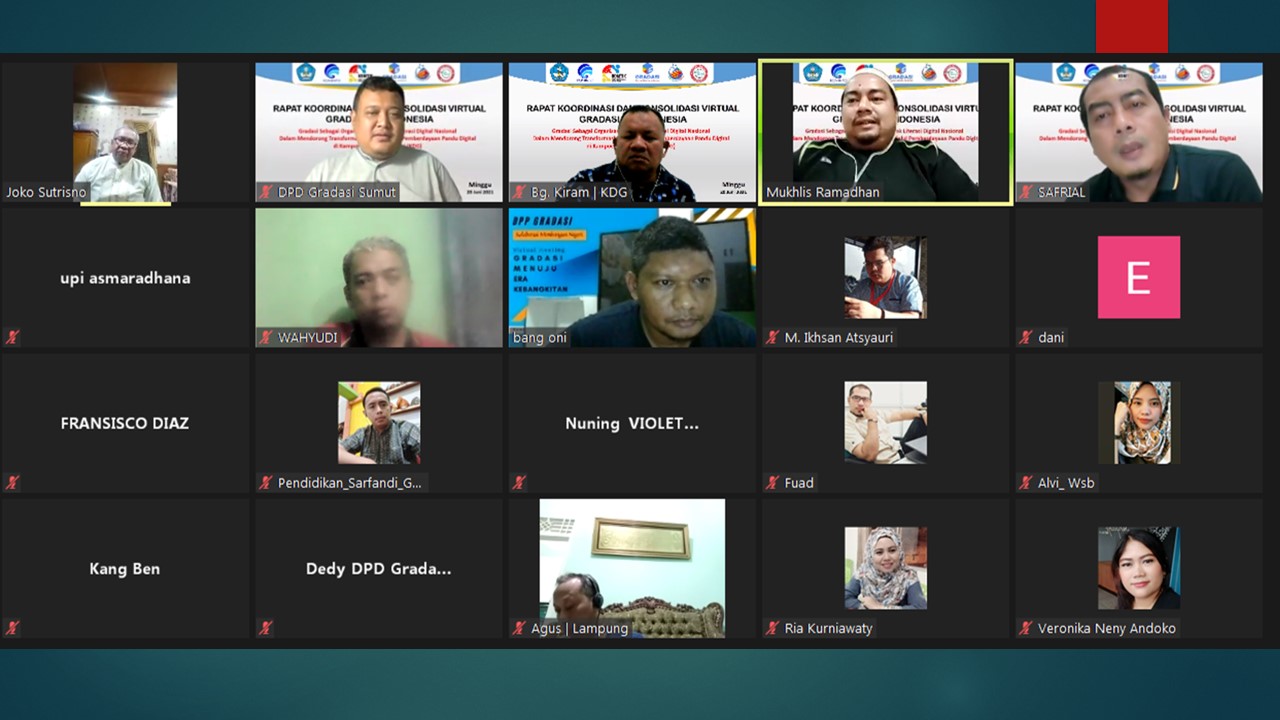 Rapat konsilidasi dan koordinasi, yang dihadiri oleh para pengurus Gradasi pusat, tersebut dilaksanakan secara daring, minggu 27 Juni 2021, jam 19.30-22.30 WIB.(*)