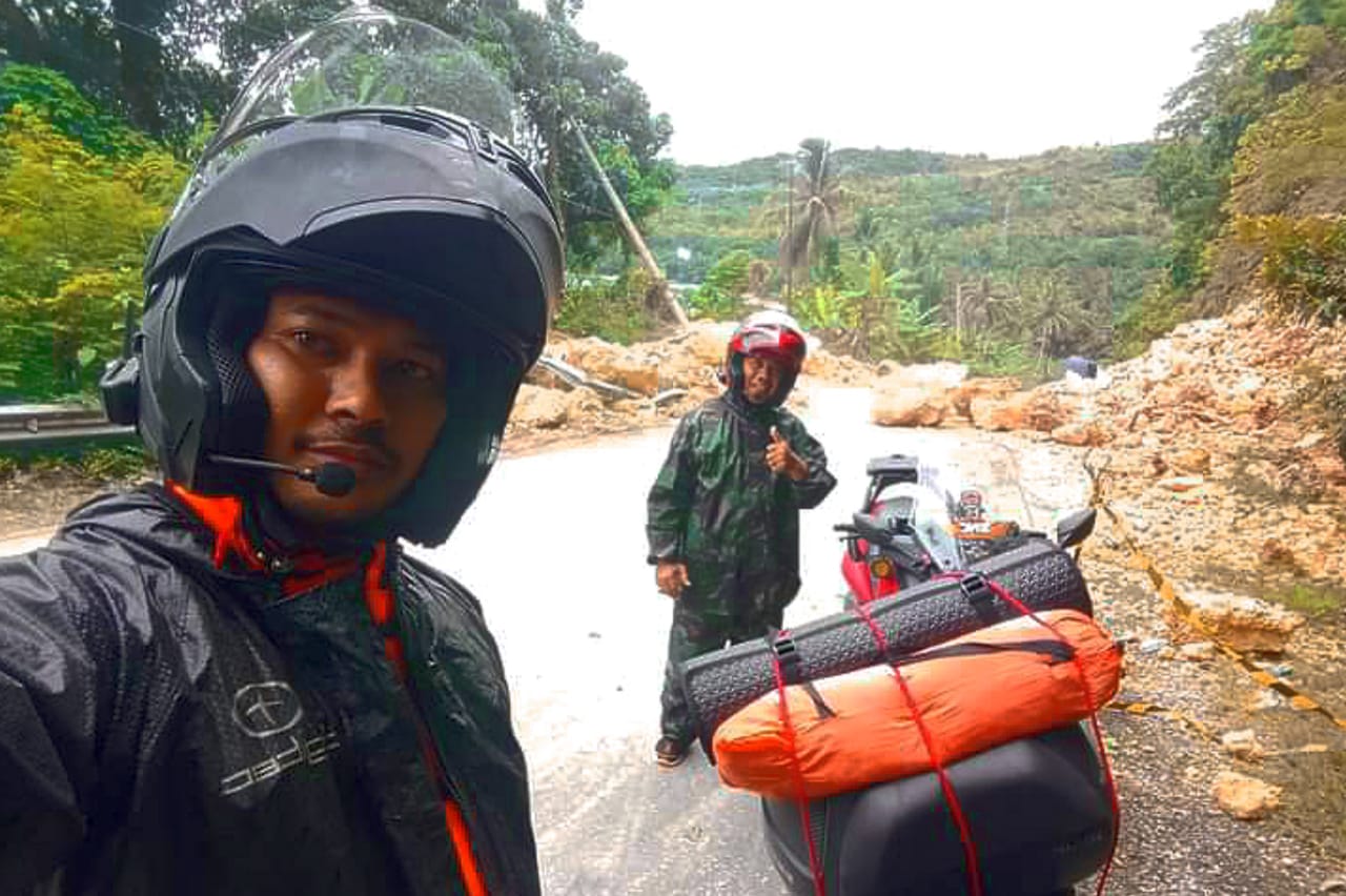 Ia tidak melalui jalur trans Sulawesi, karena masih terputus akibat longsoran, ia mencari jalur alternatif lain, hingga tiba di kabupaten Mamuju, Sabtu (16/01/2021).