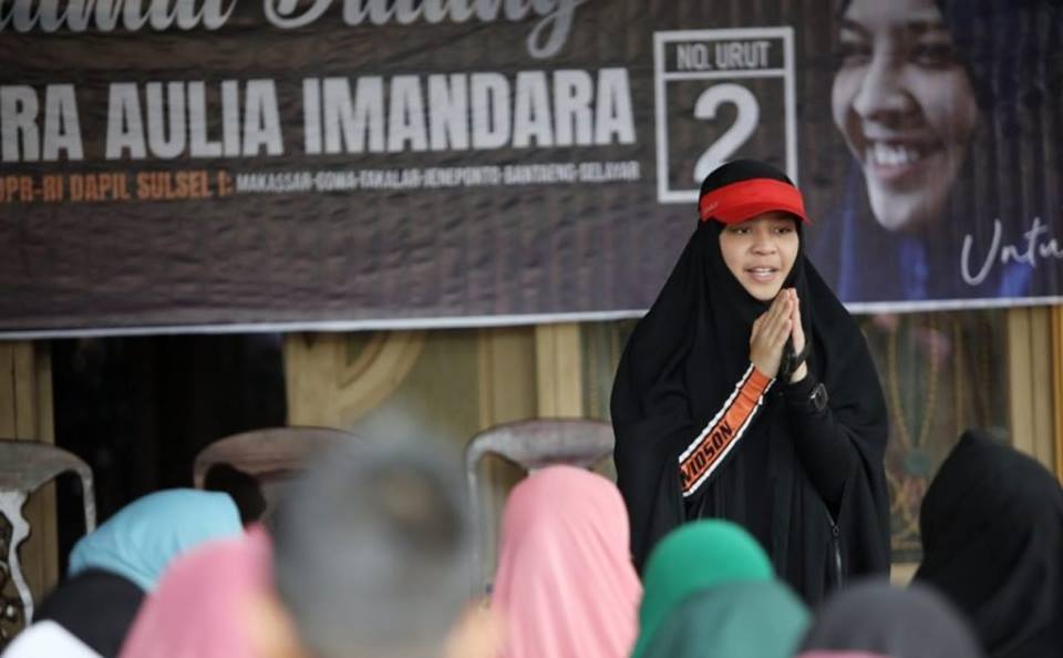 WAHANA INFOTA – Calon Anggota Legislatif (Caleg) DPR RI Dapil Sulsel 1 dari Partai Nasdem, Aura Aulia Imandara Danny Pomanto, kembali menyapa warga Kabupaten Takalar, Sabtu (9/2/19).