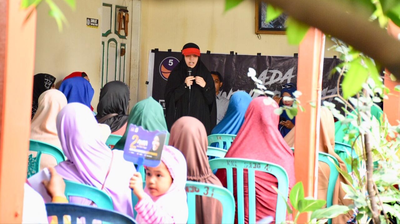 Warga berkumpul menyambut kunjungan Aura Aulia Imandara Danny Pomanto, caleg DPR RI dari Partai NasDem, yang hadir bersama tim.