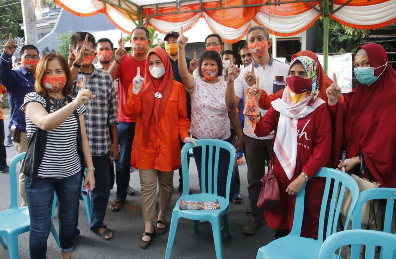 WAHANAINFOTA, MAKASSAR – Sejumlah pedagang di Pantai Losari begitu antusias menyambut kedatangan calon wakil wali kota Makassar, Fatmawati Rusdi dalam agenda kampanye dialogis di Kelurahan Losari, Kecamatan Ujungpandang, Rabu (28/10/2020).