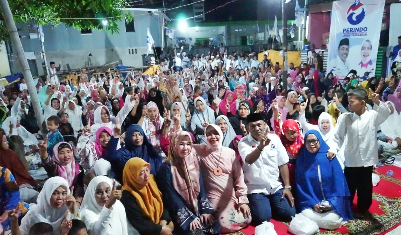 WAHANA INFOTA – Caleg DPR-RI Partai Perindo, Dapil 1 Sulsel, Indira Yusuf Ismail mengingatkan, warga ayo datang ke Tempat Pemungutan Suara (TPS) yang diadakan Komisi Pemilihan Umum (KPU) Sulsel pada 17 April 2019. Hal ini disampaikan saat menghadiri pengajian bersama ribuan warga Depassawi Luar di RW 5, Kelurahan Maccini Sombala, Kecamatan Tamalate, Selasa (9/4/19) Malam.