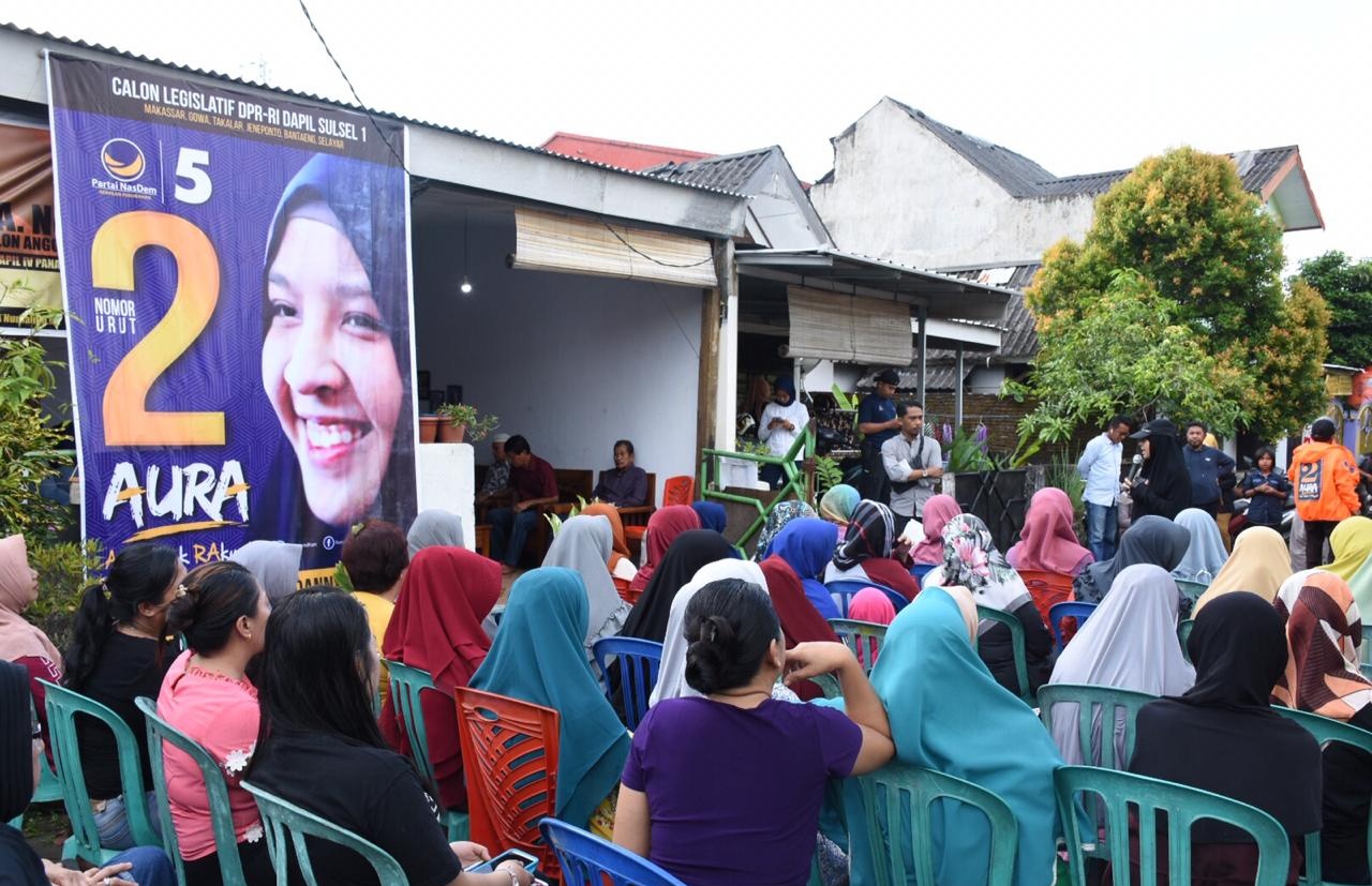 WAHANA INFOTA – H-7 sebelum pencoblosan, Caleg DPR RI dari NasDem, Aura Aulia Imandara Danny Pomanto, tuntaskan tiga undangan dari warga Kecamatan Manggala, Selasa (9/4/19).