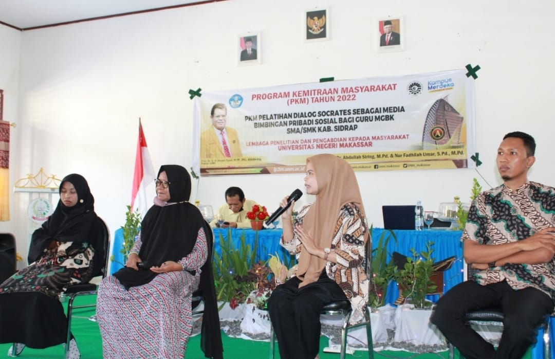 PKM ini dilaksanakan dalam bentuk Pelatihan Dialog Socrates sebagai media Bimbingan Pribadi sosial bagi guru MGBK SMA/SMK Kab. Sidrap.