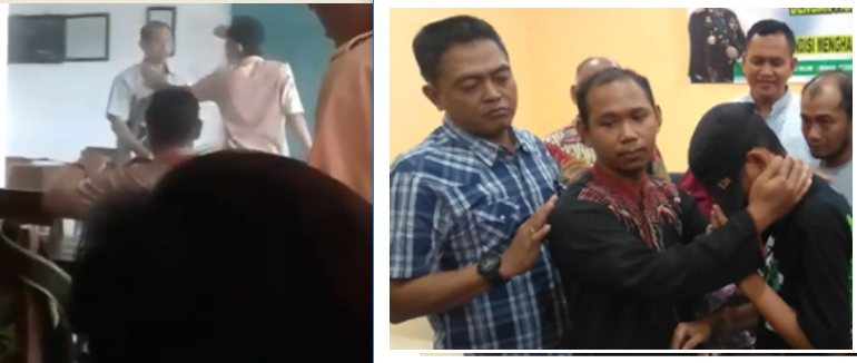 Para pihak yang datang adalah sang guru, Nur Kalim (30) dan si siswa. Si siswa datang didampingi kedua orang tuanya Slamet Arianto (47) dan Anik.