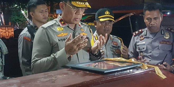 WAHANA INFOTA – Wakapolda Sulsel Brigjen. Pol. Drs. Adnas, M.Si. menjemput kedatangan Jenazah Korban Kelompok Kriminal Bersenjata (KKB) An Matius Palinggi yang bertempat di Cargo Bandara Sultan Hasanuddin, Kabupaten Maros (11/12) pada pukul 19.30 Wita